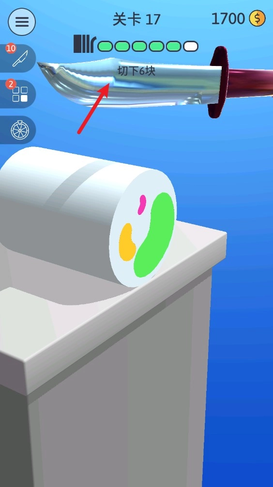 每一个关卡都有不一样的目标,达成目标就能通关,像这里就要求把物品切成五块。