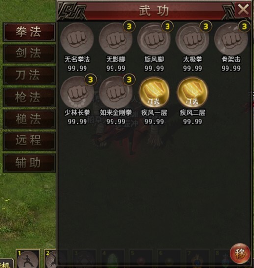 3) 每次升层,当前所有的武功都需要消耗1本自身对应的武功秘籍。