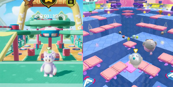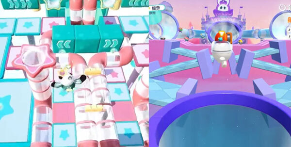 元梦潮起潮落的亮点在于不断变化的波形障碍墙和可伸缩的踏脚板。与之相似的是蛋仔的波涛迷宫,同样呈现起伏不定的迷宫设计。尽管画风和地图背景有差异,但核心设计相似。虽然蛋仔的地图在视觉上稍逊一筹,但其设计却与元梦一样成熟,显示出蛋仔的高水平。