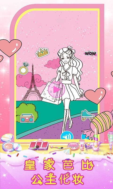 2.挑选美妆产品:在游戏界面的下方区域,玩家能看到眼影、腮红、口红等各类美妆产品。点击对应的美妆产品图标后,在芭比公主的脸部进行拖动操作,就能完成化妆步骤。
