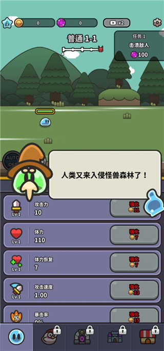 2、不断强化史莱姆以及它的装备与技能,让它成长为无人能敌的战士吧;