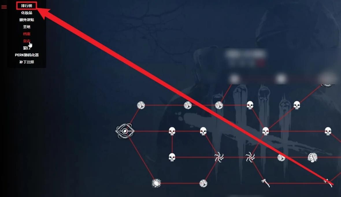 3、如图所示然后在排行榜界面点击【幸存者统计】。
