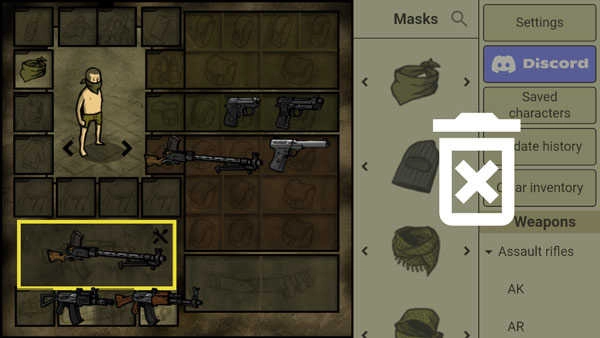 bag代表书包与军用背包,eye代表夜视仪和战术护目镜。请用手拖动到人物周围对应的方框里,要是对应方框不对,就没办法保留选中的物品。注意:暗色区域要放置背包之类的物品来解锁贮存空间。