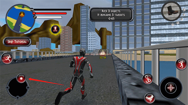 1、借助游戏里的地形施展飞跃绳索技巧,在城市之中穿梭游荡。