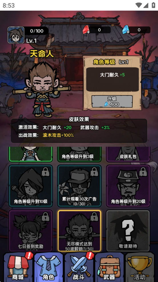 4、消灭敌人来获得经验,快速提升炮台的等级。