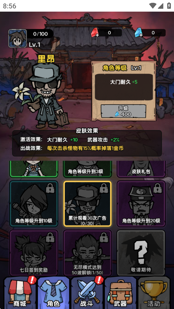 出战效果:每次击杀怪物有15%概率掉落1金币