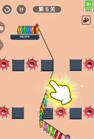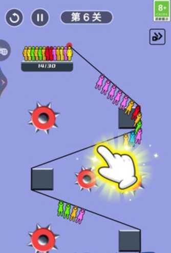 4、简约卡通的画风搭配魔性十足的橡皮人大救援玩法,目标是把小人转移到安全区域