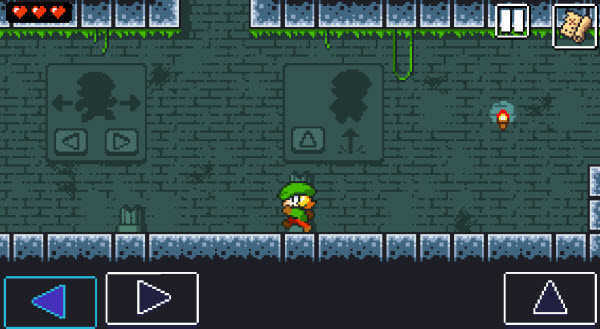 3、屏幕下方三个按键可以操控角色左右移动与跳跃。
