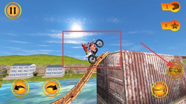 3、在特技赛道上,通过方向键操控摩托车,越过坡道、集装箱等各类障碍,完成特技动作,冲过终点线,以此积累分数。