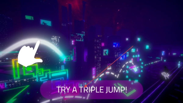 2、在都市场景中,按提示“TRYATRIPLEJUMP!”尝试三段跳,跨越障碍,推进游戏进程。