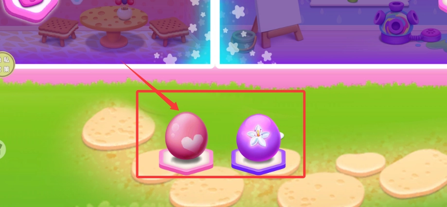 2、在温馨的小屋场景里,两颗神秘的宠物蛋正等待你亲自孵化培育。