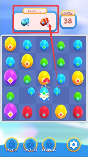 1、基础机制,玩家通过交换相邻蛋蛋形成三消组合,根据消除规则获取分数,逐步解锁更高阶关卡,体验进阶乐趣。