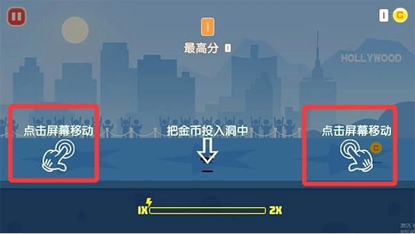 1、进入街头场景后,小虫子将自动进入人流密集区域,目标是躲避每一只迈步而来的大脚,同时收集地面上的金币进行积累。