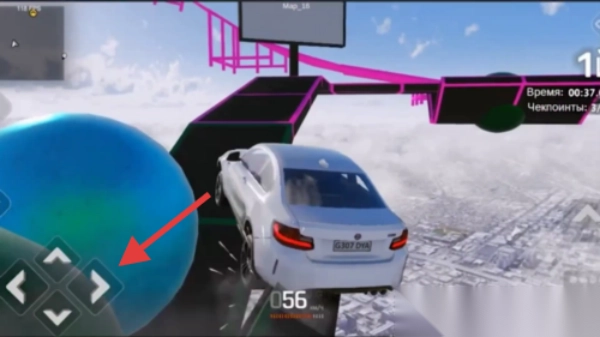 2、特技挑战环节:玩家需操控赛车驰骋于环形赛道、高空跳台等特色赛道之上,借助虚拟按键来把控行驶方向与车身平衡。