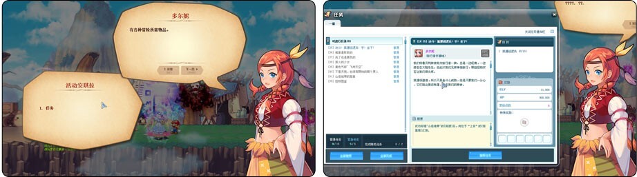 跟NPC对话就能够接取或完成指定的任务。