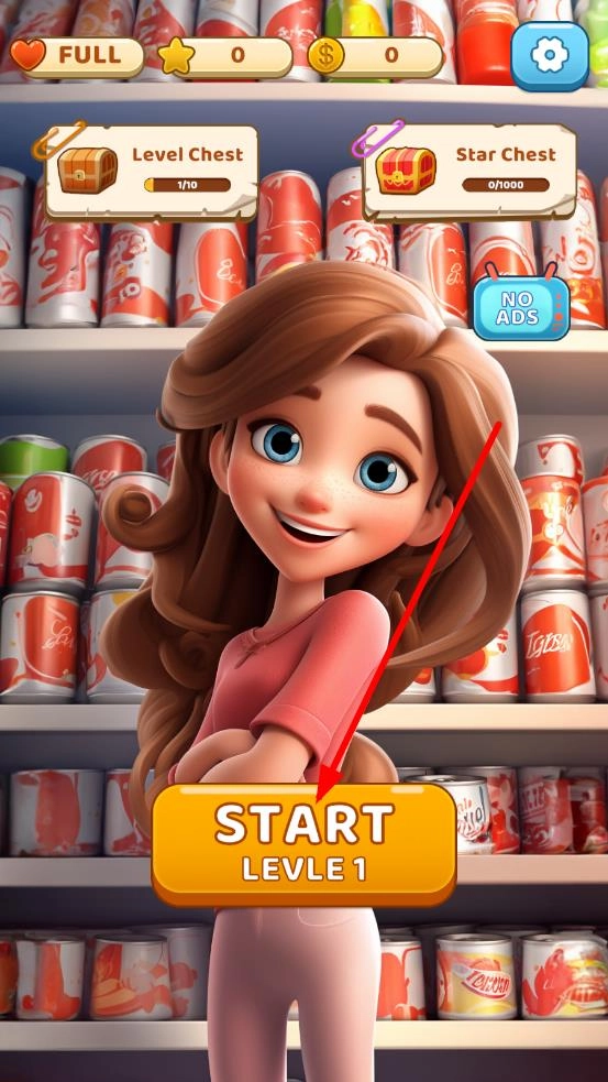 1、点击“START LEVLE1”按钮开启第一关,开启货架整理挑战之旅,熟悉基础操作,观察如何能够快速通关。