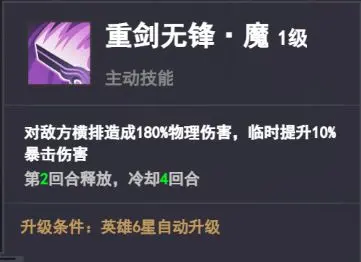 对敌方横排造成180%物理伤害,临时提升10%暴击伤害