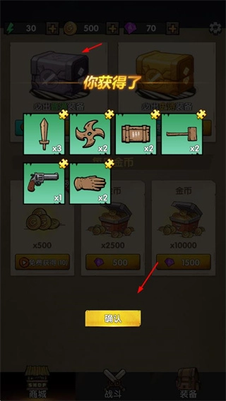 3、开启宝箱可获取各类装备与资源,为合成操作及战斗环节提供所需物资。