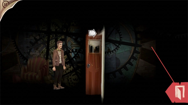 2、完成前一场景互动后角色会移动到此处,继续操控左侧方向键控制角色移动关注右侧的门以准备后续互动步骤。