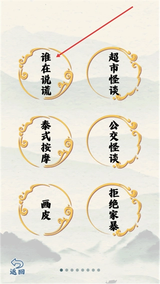 2、进入关卡选择界面,可看到谁在说谎、超市怪谈等关卡选项,选择对应关卡即可进入,也可点击返回回到启动界面。