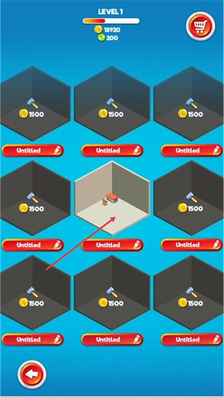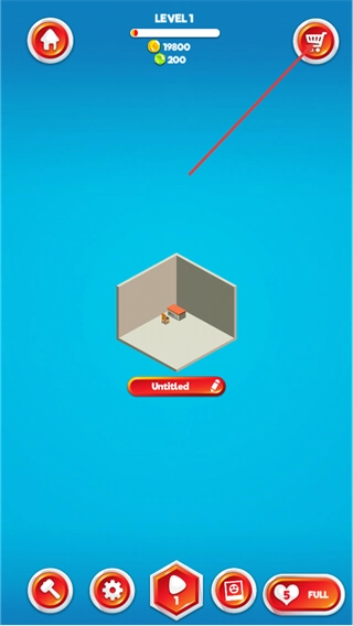 进入LEVEL1界面后,你可以点击右上角的SHOP按钮进入商店,还能对Untitled这个名称进行编辑,为接下来的空间布置做准备。