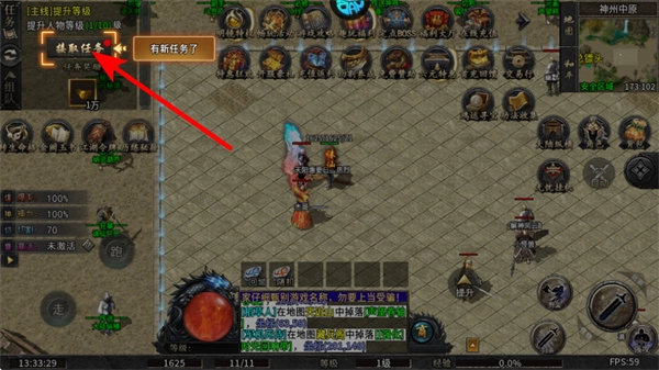 3、跟随红色箭头提示,点击获取任务按钮,接取主线任务如提升等级,明确游戏前期的核心目标。