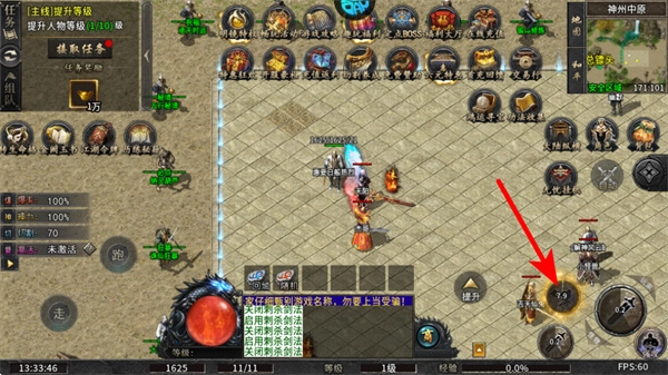 4、接取任务后,紧跟红色箭头指引,点击攻击按钮对目标敌人发起攻击,推进任务进度、获取经验与奖励。