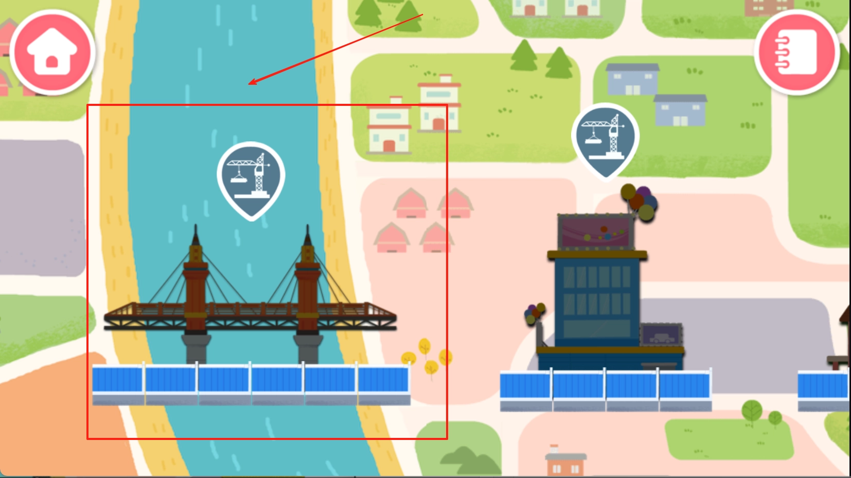 1、打开游戏,在河流这边找到并点击大桥。