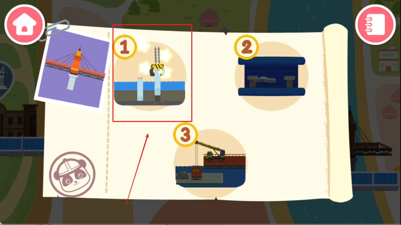 1、基础建设阶段:先在河岸确定好桥墩的位置,接着点击图纸上亮起的区域启动施工流程。随后依照指引依次完成打桩、架梁等操作步骤,直至最终实现两岸交通的连通。