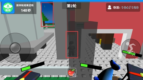 在第一轮生存阶段,要优先去收集场景里的苹果道具,一旦血量偏低就马上使用;另外还要避开其他玩家聚集的地方,这样能减少竞争冲突和意外受伤的情况。