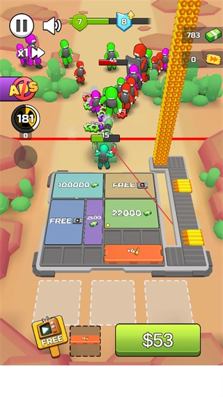 战斗时,炮台会自动向越过红线的敌人发射子弹,要持续增强火力来对付蜂拥而至的敌人。