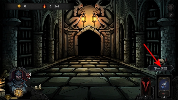 击败敌人后,点击“下一房间”即可进入新的场景。进入之前,建议先观察场景布局以及可能存在的敌人,这样能为接下来的战斗提前做好准备。