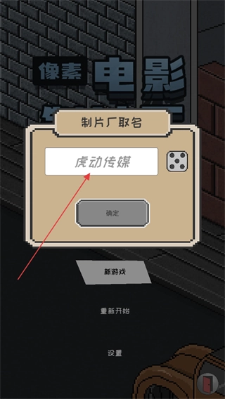 在制片厂的命名界面,输入像示例里“虎动传媒”这样的名称,点击确定按钮就能完成命名并进入游戏。