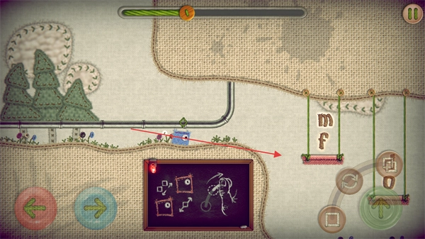 借助秋千的摆动,移动到带有m字母的秋千上,收集字母道具。