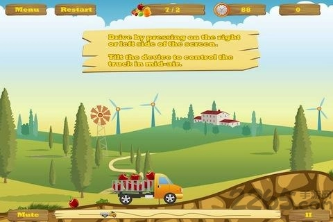 1、点击“开始游戏”,驾驶着大卡车行驶在蜿蜒曲折的山路上,车厢里的水果晃荡不停,随时都有掉落的风险,整个过程既紧张又充满刺激感。