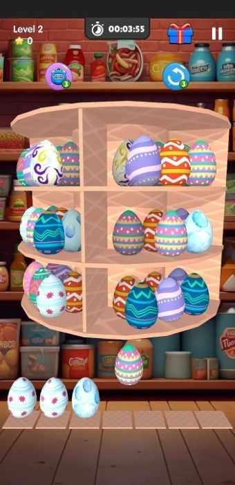 2、点击带有相同图案的瓶子,一旦凑够三个,它们就会自行消除,此时会响起清脆的消除音效,并且系统会同步记录分数。