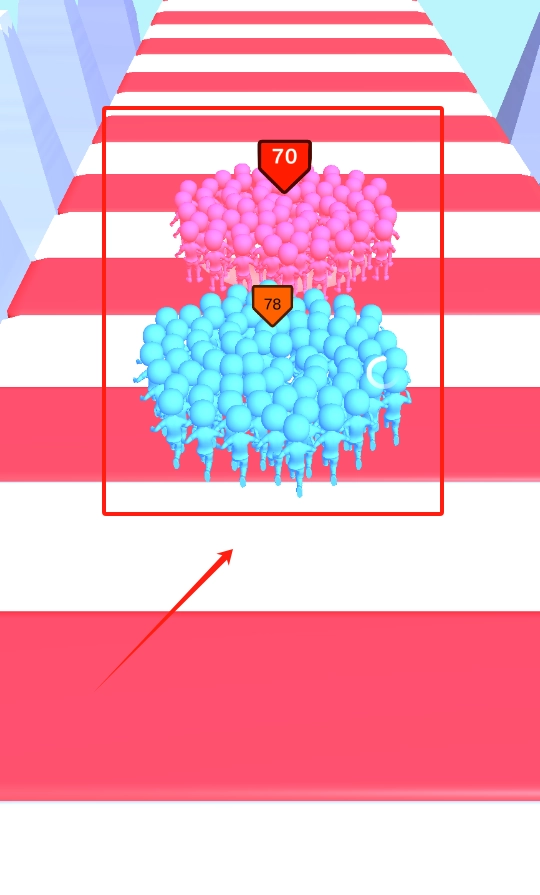 3、操控蓝色与粉色小人,各自需达到70分和78分以上,比拼谁能跑得更远、得分更高。
