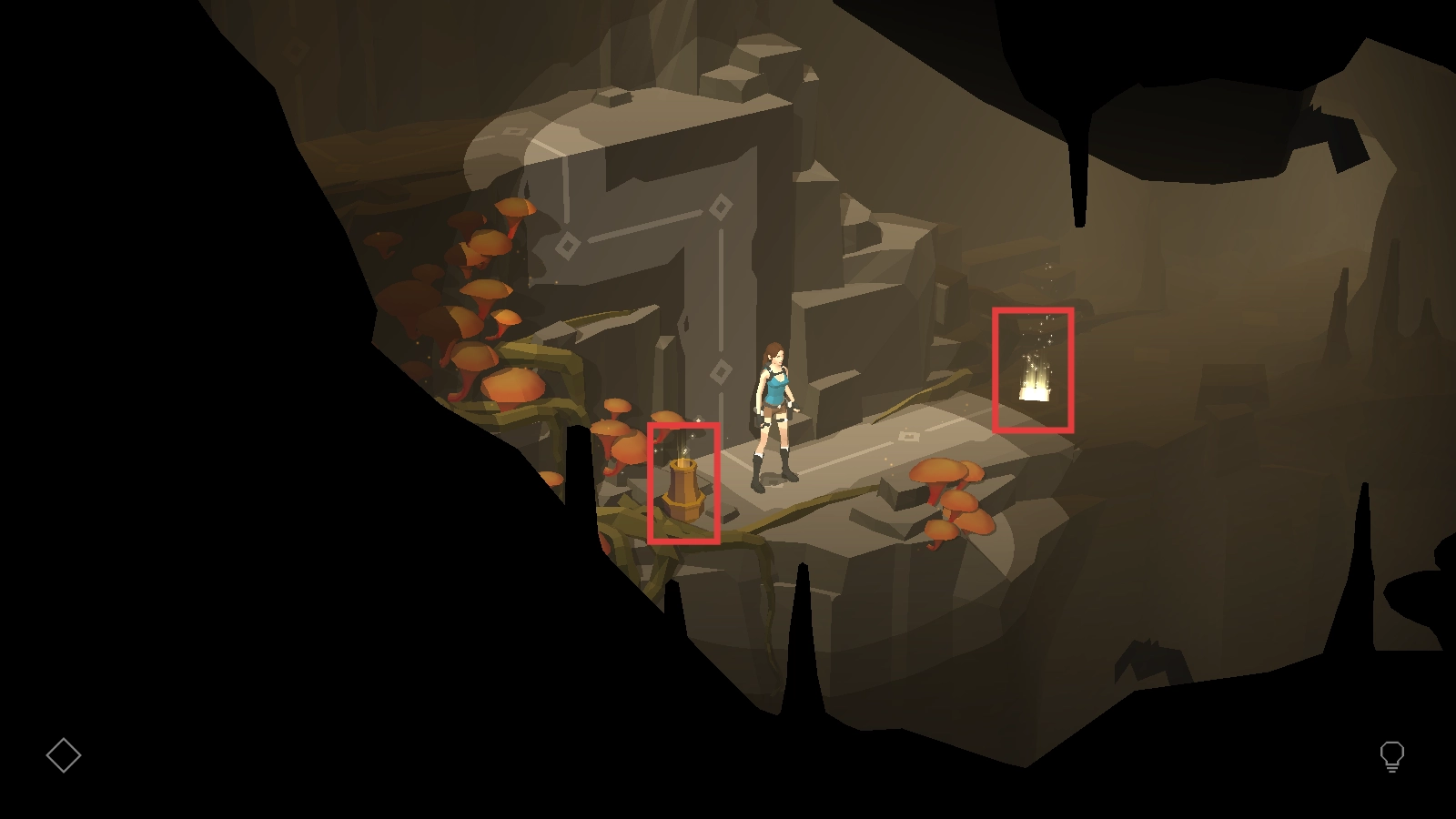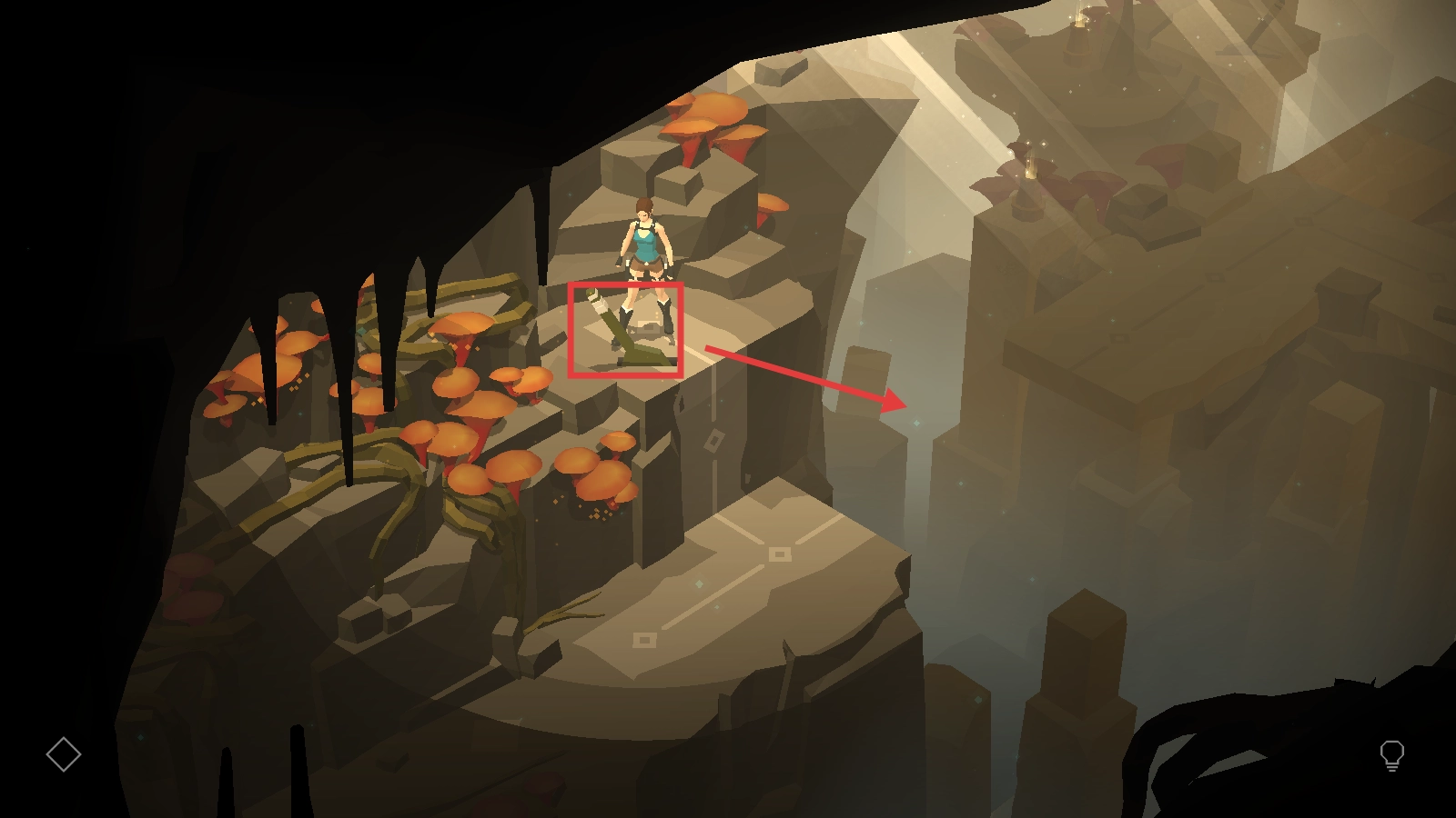在丛林场景里,循着红色箭头的指引,操控劳拉进行移动与攀爬,去探索新的区域,开启这场冒险之旅吧。
