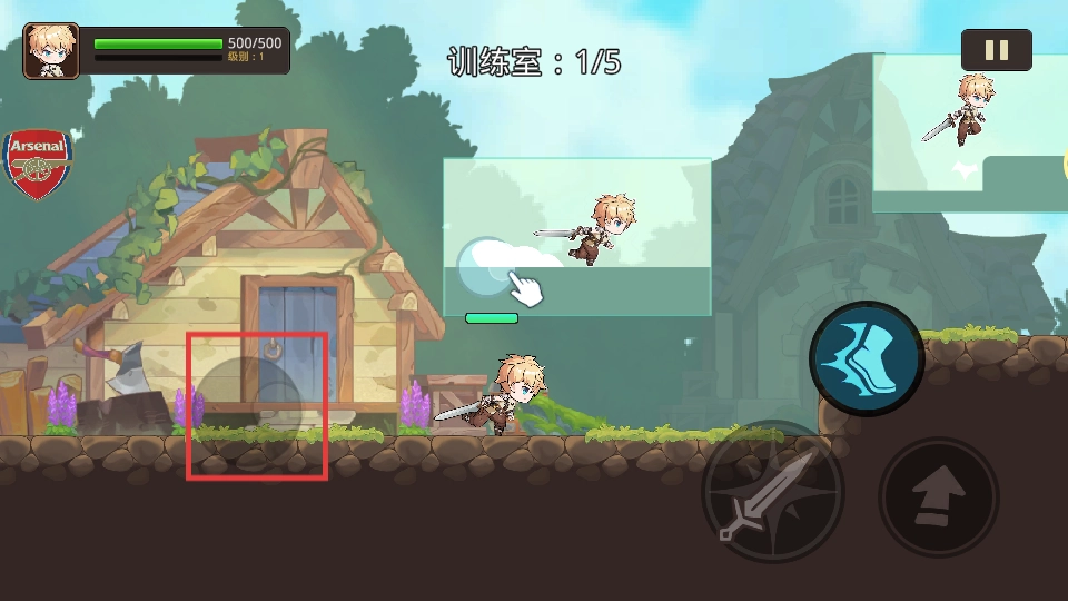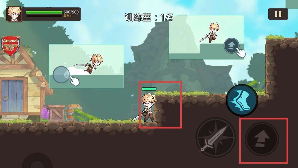 点击跳跃按钮,使角色跃至高处,以便继续探索训练室。