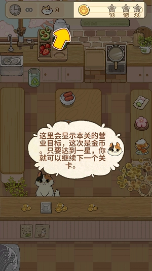 关卡的营业目标会显示在上方,这些目标各不相同,只要达成一星就能解锁下一个关卡。