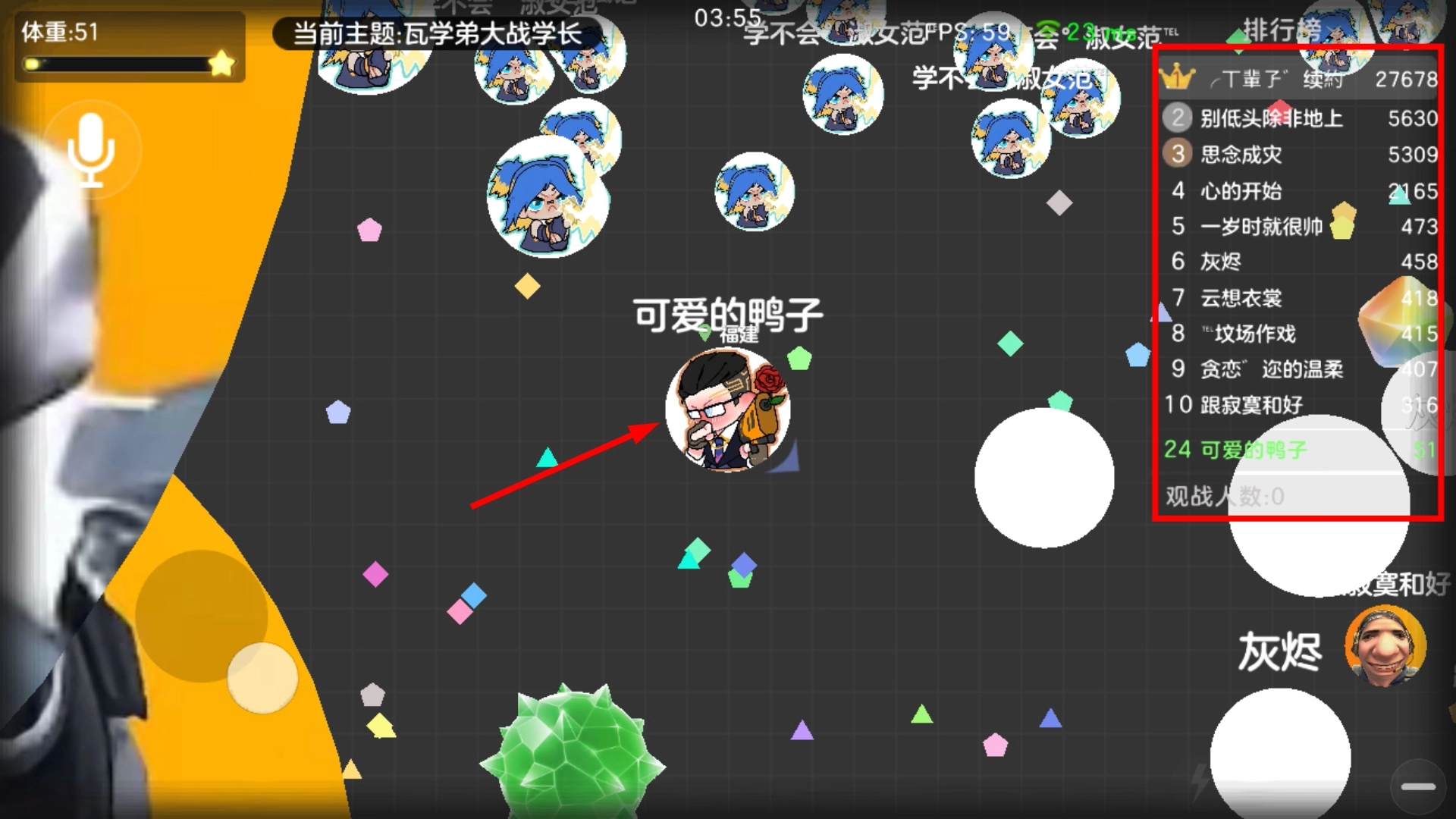 前期不要分裂,稳定的吃地图上的资源即可。