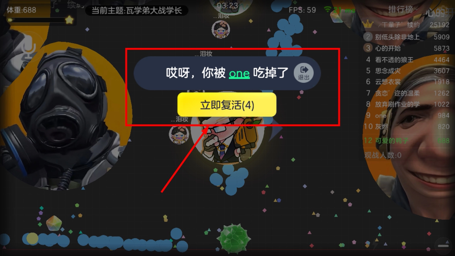 要是被其他玩家吃掉,你可以选择马上复活接着玩,这样能维持游戏节奏,防止因为失败暂停进程而影响体验。