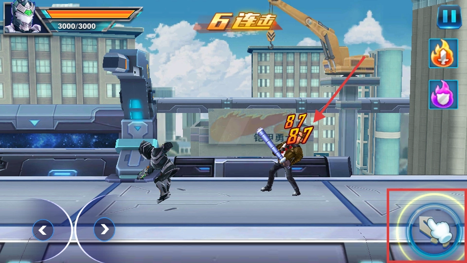 敌人出现后,点击右下角的攻击按钮,持续攻击以积累6次连击,每次攻击会造成87点伤害,这样能提升输出效率。