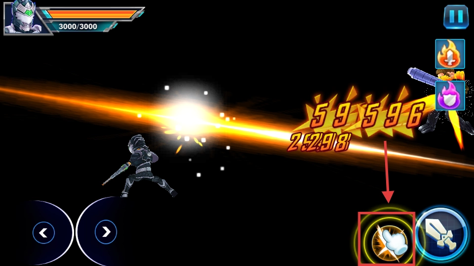 当敌人血量处于合适区间时,点击技能按钮释放技能,即可触发华丽特效,单次技能能打出【59】-【596】-【2998】这样的高额伤害,助力你快速击溃敌人。