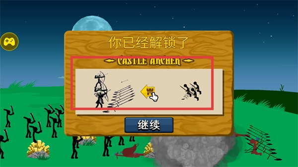 解锁【CASTLE-ARCHER(城堡弓箭手)】后,点击【继续】,借助该单位的远程输出能力来增强攻防表现。