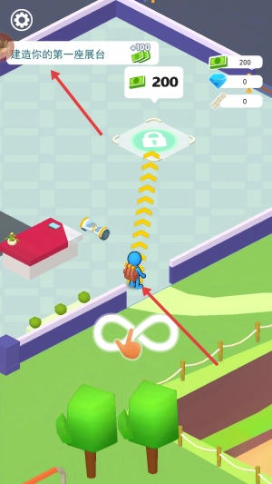 在指定区域内停留,收集金币,点击右侧的相机图标,解锁新功能。