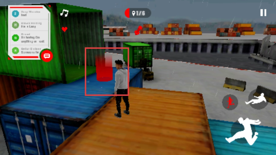 借助右侧的动作按钮,完成跳跃、滑行等操作,跨越集装箱之类的障碍物。