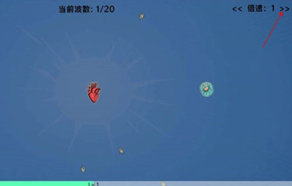 进入游戏后,用手指拖动细胞来消灭入侵者,以此保护心脏。游戏界面的右上角可以设置倍速,这样能加快游戏进程。