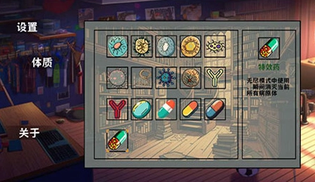 其次,游戏的实际内容比较单薄,可玩关卡仅有五关,难度设计也亟待优化,这是它最突出的问题。玩法层面的属性选择基本是肉鸽类游戏的标配,拓展内容只是在题材框架下换皮调整,实际体验和同类型游戏差异不大;加上设定限制,“割草”的爽感没体现出来,连“休闲”的轻松感都很难感受到——玩起来特别累,需要兼顾各种细节,而且作为保护目标的心脏固定在屏幕正中间无法移动,防守难度很高。另外,属性与塔防机关的选择是绑定的,二者只能选其一:选属性就少了机关的打击手段,选机关又缺了属性带来的伤害和效果加持,这种设计让体验很有“负重感”,玩久了容易疲倦。能不能通关基本看布局和运气,就算脑子里想好布局,也得靠运气刷到对应的细胞才能实现。