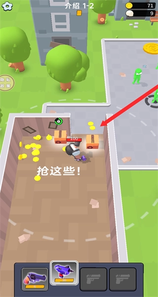 控制角色移动至标有“抢”字的区域,收集该区域内的金币等资源,为后续战斗积累必要的物资储备。